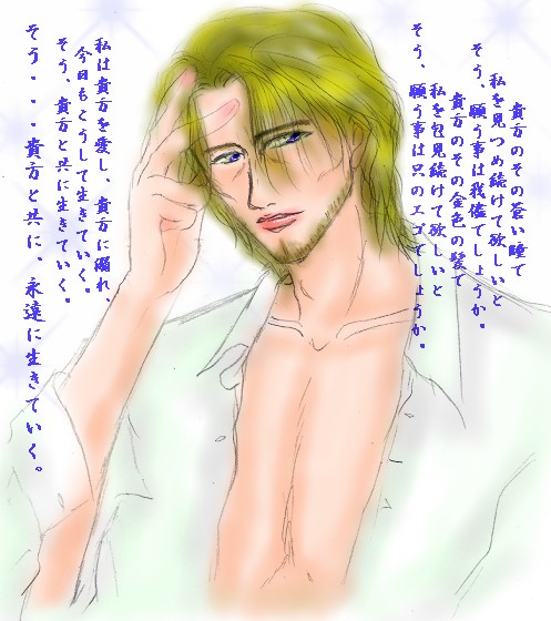 ![]() 素敵な頂き物です。存分にご鑑賞くださいv(みせびらかしか・・・!) だけど無断転載大厳禁です。 お花にカーソル合わせると、説明が。